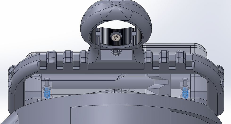 I decided that it would be best if compression springs were used instead of torsional springs to return the handle to its starting position, this also kills two birds with one stone seeing as I now don't have to design a stopper for the gear dowel to limit rotation (the nuts on the end of the spring guide rods do this). I have also made a motion study showing the device in action with a standard jar.